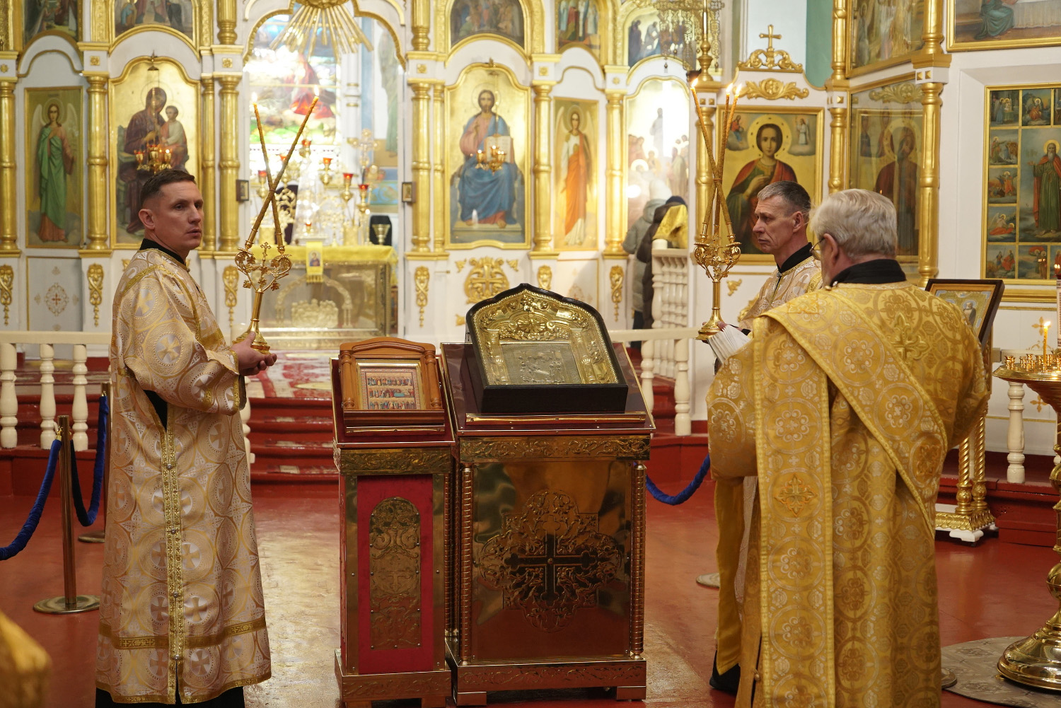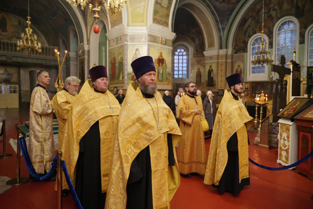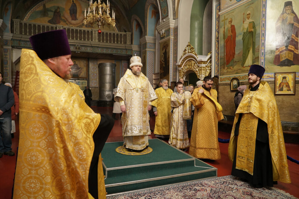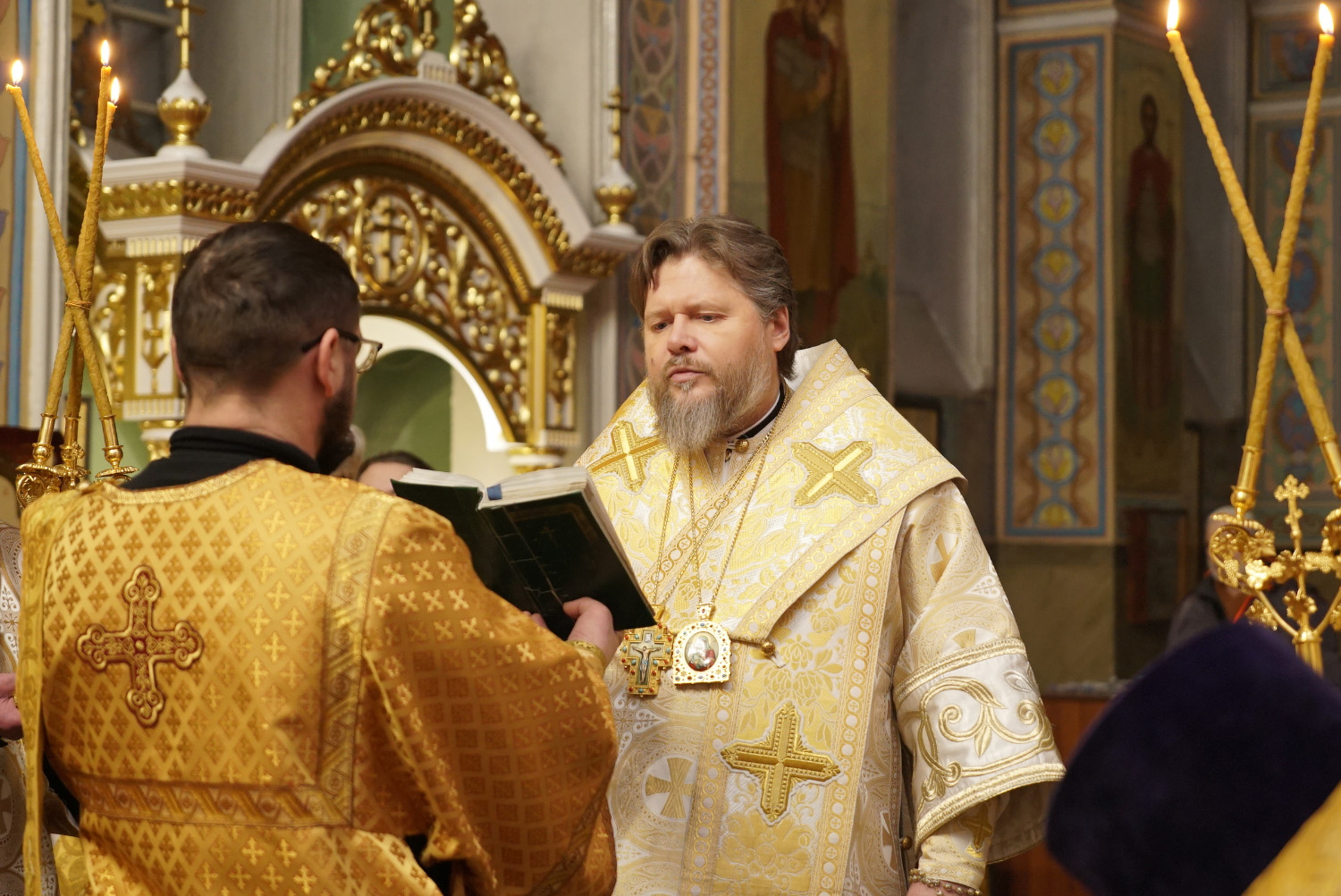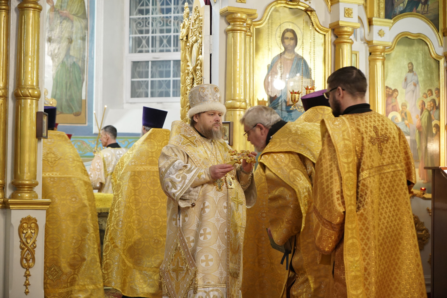 Преосвященному владыке сослужили: протоиерей Владимир Ащеулов, иерей Иоанн Шкуропацкий, иерей Артемий Золотых, диакон Вадим Шпак, диакон Артемий Волков.